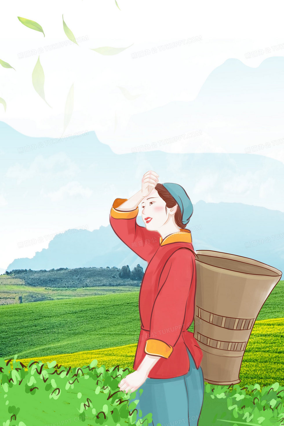 本作品内容为茶叶茶园插画摄影合成养生背景, 格式为 psd, 大小49 MB, 图片尺寸为2362 x 3543, 作品中背景图片无需修改, 源文件无水印,可以直接使用, 欢迎使用熊猫办公。 如认为平台内容涉嫌侵权,可通过邮件:tousu@tukuppt.com提出书面通知,我们将及时处理。