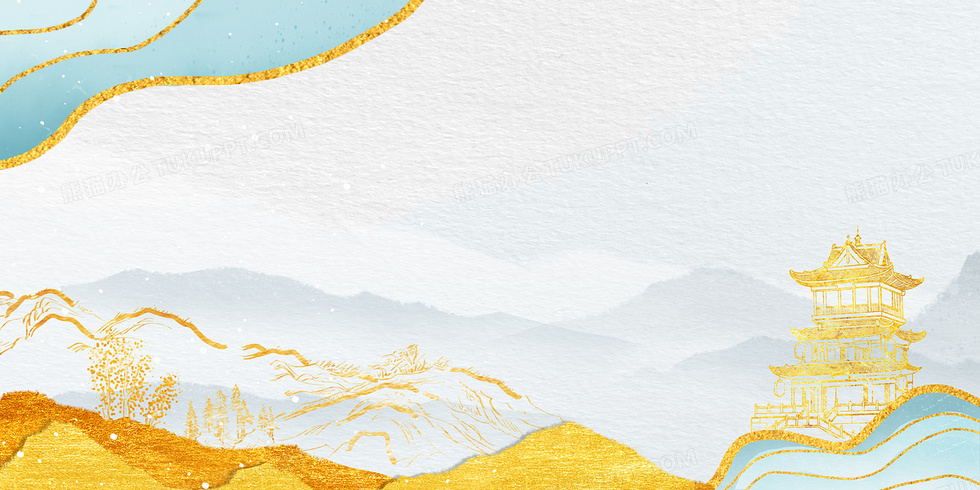 本作品内容为鎏金山水古建筑线描简约雅致中国风背景, 格式为 psd, 大小68 MB, 图片尺寸为4724 x 2362, 作品中背景图片无需修改, 源文件无水印,可以直接使用, 欢迎使用熊猫办公。 如认为平台内容涉嫌侵权,可通过邮件:tousu@tukuppt.com提出书面通知,我们将及时处理。