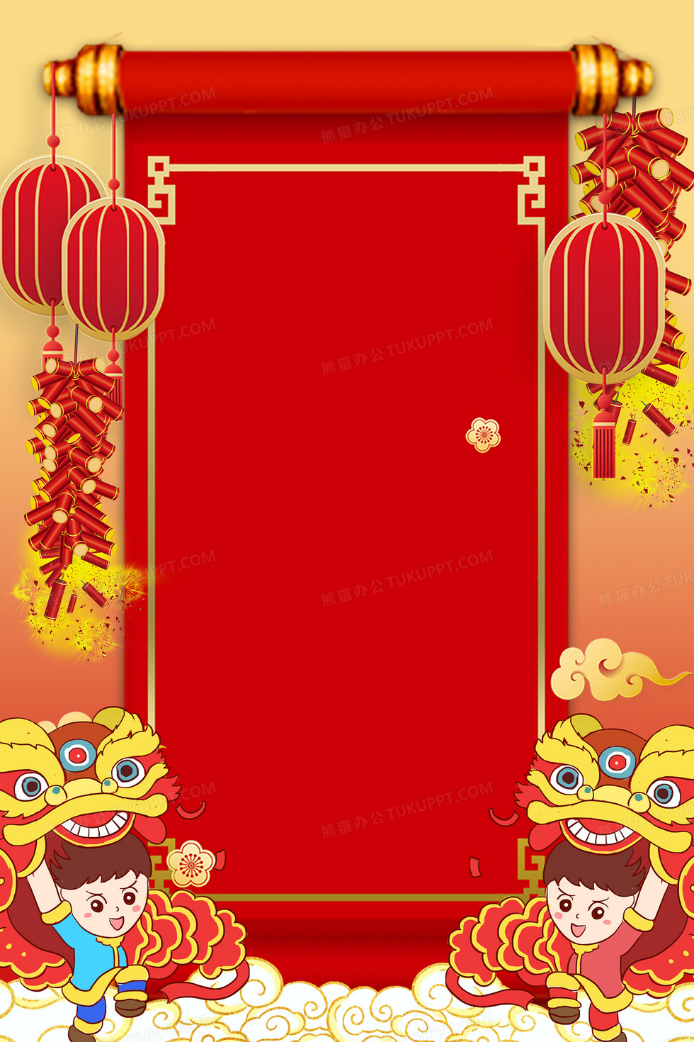 本作品内容为红色喜庆元宵节舞狮背景, 格式为 psd, 大小40 MB, 图片尺寸为3543 x 5315, 作品中背景图片无需修改, 源文件无水印,可以直接使用, 欢迎使用熊猫办公。 如认为平台内容涉嫌侵权,可通过邮件:tousu@tukuppt.com提出书面通知,我们将及时处理。
