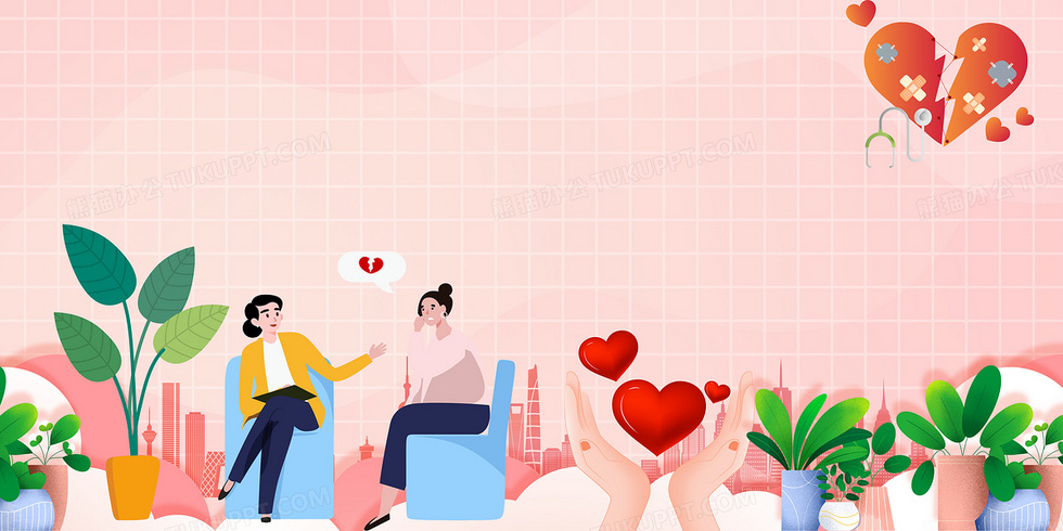 本作品内容为粉色温馨手绘风心理健康咨询宣传背景, 格式为 psd, 大小26 MB, 图片尺寸为4724 x 2362, 作品中背景图片无需修改, 源文件无水印,可以直接使用, 欢迎使用熊猫办公。 如认为平台内容涉嫌侵权,可通过邮件:tousu@tukuppt.com提出书面通知,我们将及时处理。