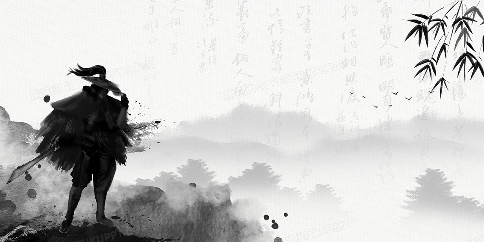 本作品内容为中国风古代侠客水墨山水背景, 格式为 psd, 大小59 MB, 图片尺寸为4724 x 2362, 作品中背景图片无需修改, 源文件无水印,可以直接使用, 欢迎使用熊猫办公。 如认为平台内容涉嫌侵权,可通过邮件:tousu@tukuppt.com提出书面通知,我们将及时处理。