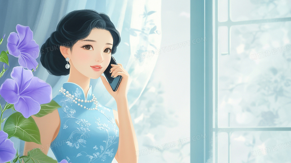 本作品内容为中国风旗袍妇女节女生卡通插画, 格式为 jpg, 大小3 MB, 图片尺寸为2912 x 1632, 源文件无水印, 欢迎使用熊猫办公。 如认为平台内容涉嫌侵权,可通过邮件:tousu@tukuppt.com提出书面通知,我们将及时处理。