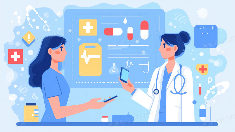 本作品内容为医院医生线上会诊医疗插画, 格式为 jpg, 大小2 MB, 图片尺寸为2912 x 1632, 源文件无水印, 欢迎使用熊猫办公。 如认为平台内容涉嫌侵权,可通过邮件:tousu@tukuppt.com提出书面通知,我们将及时处理。