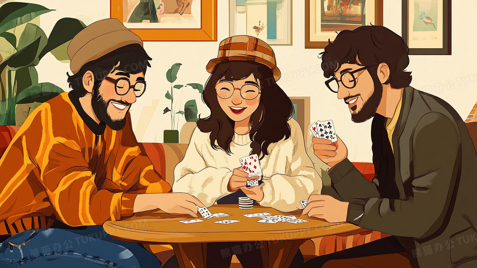 本作品内容为娱乐生活打扑克牌插画, 格式为 jpg, 大小3 MB, 图片尺寸为2912 x 1632, 源文件无水印, 欢迎使用熊猫办公。 如认为平台内容涉嫌侵权,可通过邮件:tousu@tukuppt.com提出书面通知,我们将及时处理。