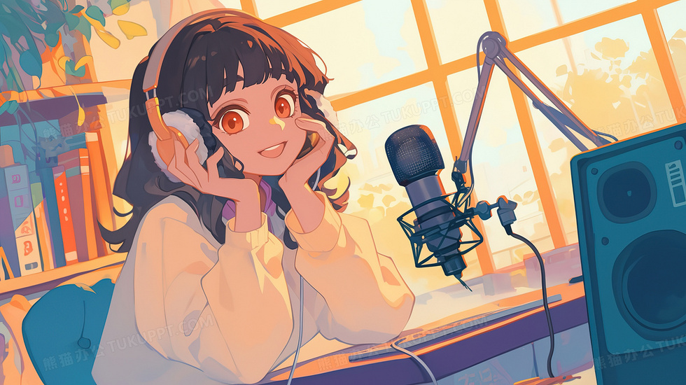 本作品内容为直播间广播电台女播音员插画, 格式为 jpg, 大小3 MB, 图片尺寸为2912 x 1632, 源文件无水印, 欢迎使用熊猫办公。 如认为平台内容涉嫌侵权,可通过邮件:tousu@tukuppt.com提出书面通知,我们将及时处理。