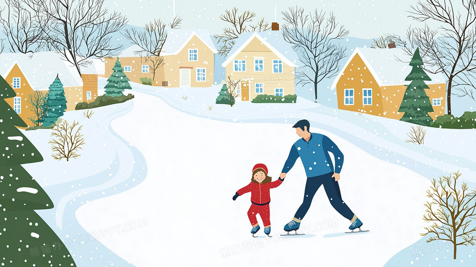 本作品内容为冬天雪地溜冰的孩子和父母插画, 格式为 jpg, 大小3 MB, 图片尺寸为2912 x 1632, 源文件无水印, 欢迎使用熊猫办公。 如认为平台内容涉嫌侵权,可通过邮件:tousu@tukuppt.com提出书面通知,我们将及时处理。