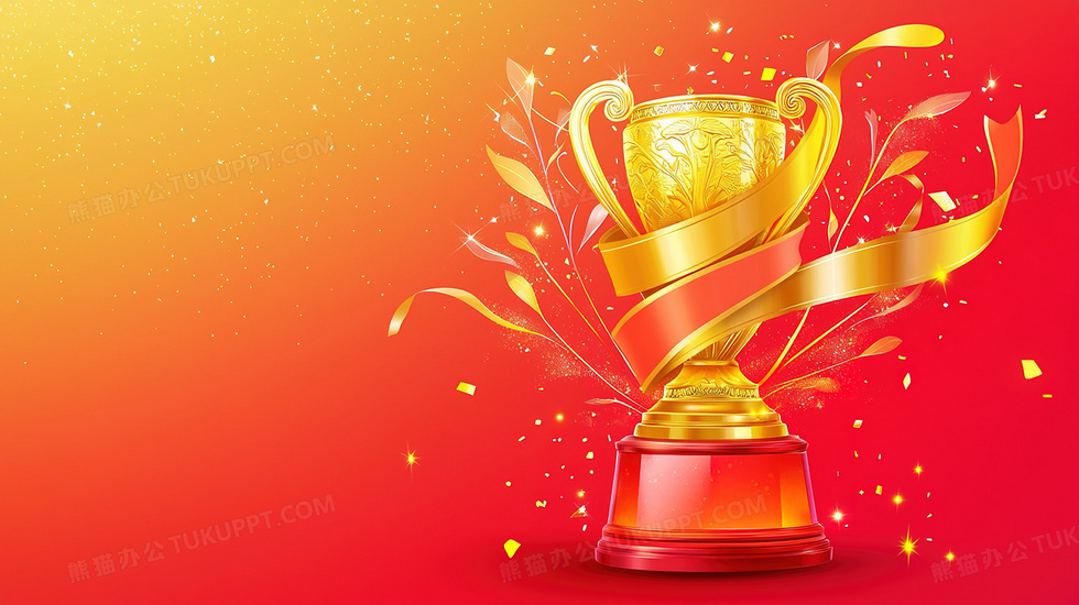 本作品内容为金色奖杯飘带背景, 格式为 jpg, 大小3 MB, 图片尺寸为2912 x 1632, 作品中背景图片无需修改, 源文件无水印,可以直接使用, 欢迎使用熊猫办公。 如认为平台内容涉嫌侵权,可通过邮件:tousu@tukuppt.com提出书面通知,我们将及时处理。