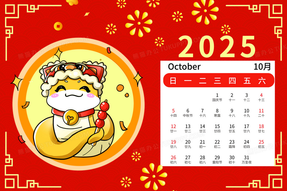 本作品内容为乙巳蛇年大吉10月插画, 格式为 psd, 大小38 MB, 请使用软件PhotoShop(CC)打开, 源文件无水印, 欢迎使用熊猫办公。 如认为平台内容涉嫌侵权,可通过邮件:tousu@tukuppt.com提出书面通知,我们将及时处理。