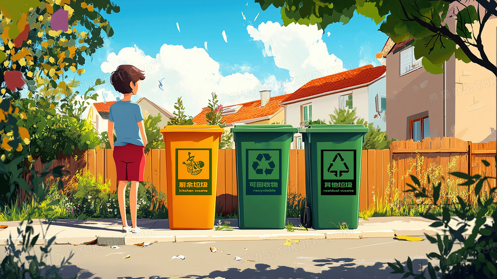 本作品内容为环保垃圾分类垃圾桶插画, 格式为 jpg, 大小4 MB, 图片尺寸为2912 x 1632, 源文件无水印, 欢迎使用熊猫办公。 如认为平台内容涉嫌侵权,可通过邮件:tousu@tukuppt.com提出书面通知,我们将及时处理。