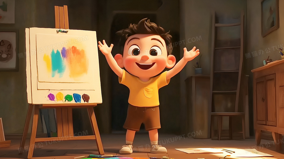 本作品内容为儿童在画架前画画插画, 格式为 jpg, 大小1 MB, 图片尺寸为2912 x 1632, 源文件无水印, 欢迎使用熊猫办公。 如认为平台内容涉嫌侵权,可通过邮件:tousu@tukuppt.com提出书面通知,我们将及时处理。