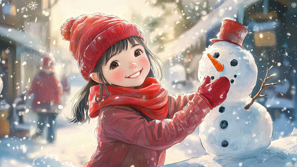 本作品内容为冬季雪地堆雪人的手绘女孩插画, 格式为 jpg, 大小3 MB, 图片尺寸为2912 x 1632, 源文件无水印, 欢迎使用熊猫办公。 如认为平台内容涉嫌侵权,可通过邮件:tousu@tukuppt.com提出书面通知,我们将及时处理。