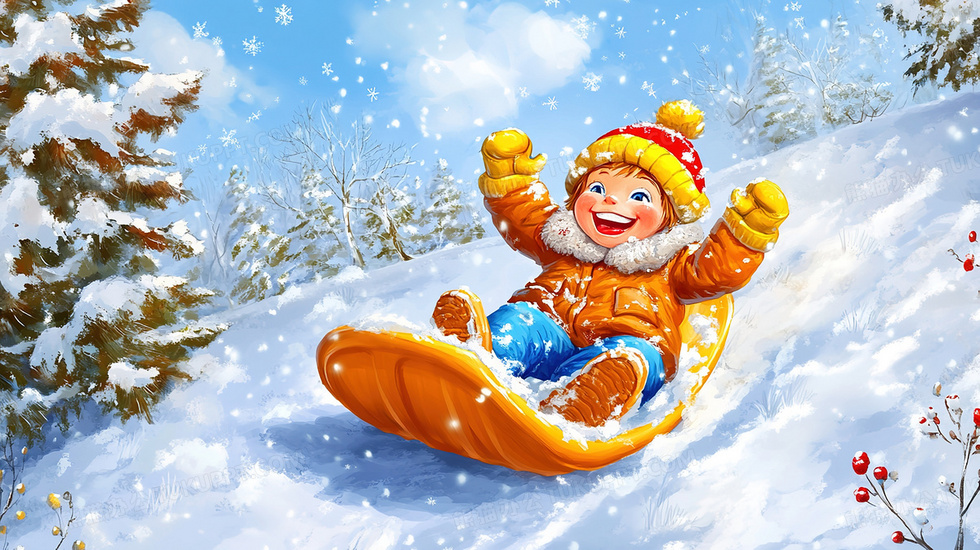 首页 > 插画 > 科技艺术 > 水彩手绘 > 冬天冬季穿着厚重衣服户外玩耍滑雪橇卡通人物插画