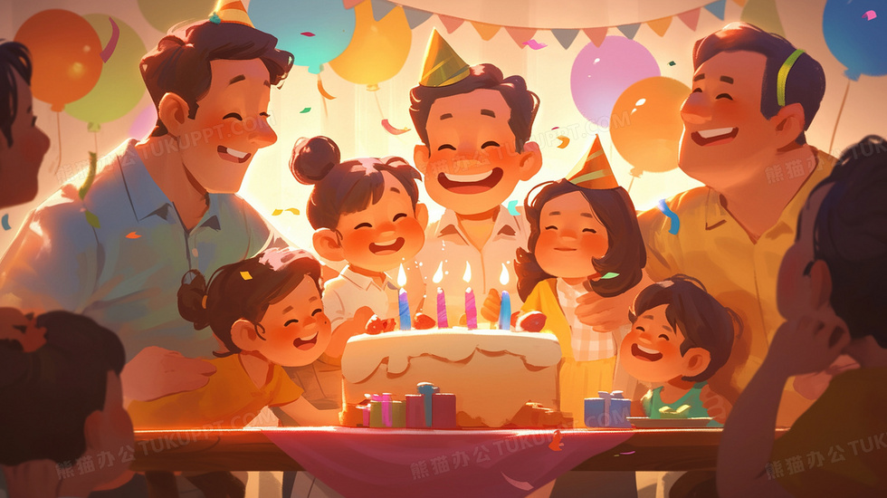 本作品内容为幸福一家人给小男孩庆祝过生日温馨插画, 格式为 jpg, 大小2 MB, 图片尺寸为2912 x 1632, 源文件无水印, 欢迎使用熊猫办公。 如认为平台内容涉嫌侵权,可通过邮件:tousu@tukuppt.com提出书面通知,我们将及时处理。