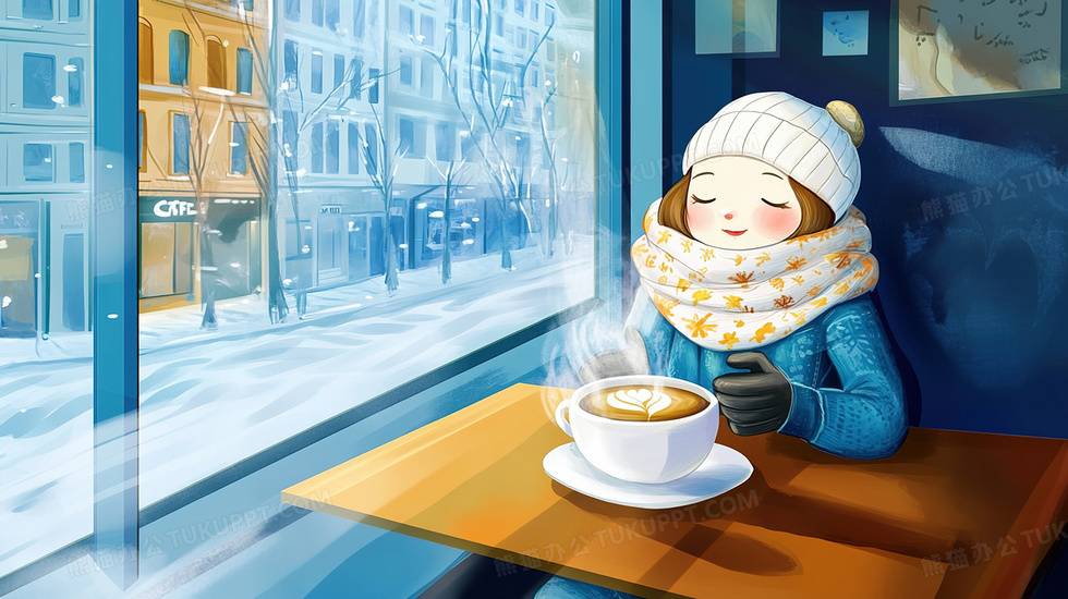 本作品内容为冬季穿着厚衣服咖啡店内喝咖啡女孩插画, 格式为 jpg, 大小3 MB, 图片尺寸为2912 x 1632, 源文件无水印, 欢迎使用熊猫办公。 如认为平台内容涉嫌侵权,可通过邮件:tousu@tukuppt.com提出书面通知,我们将及时处理。
