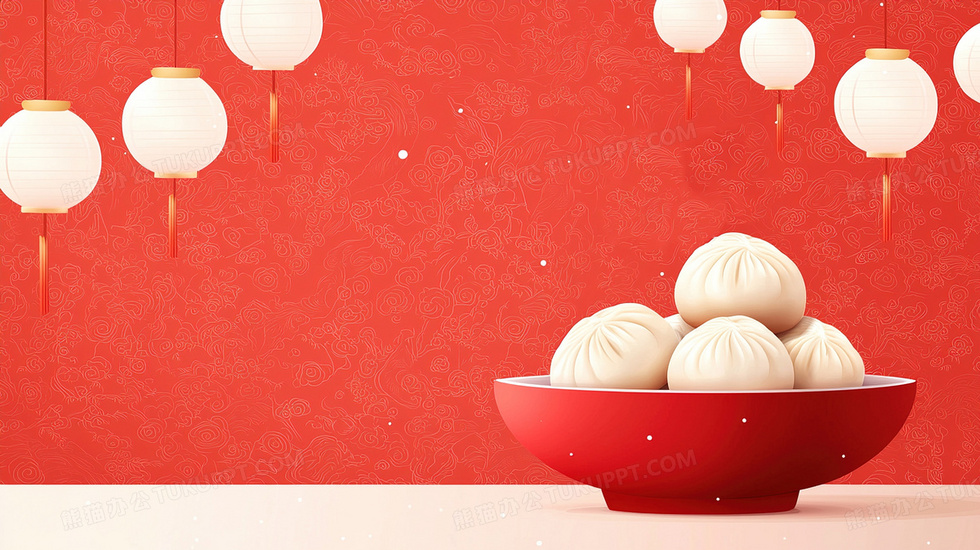 本作品内容为卡通美食包子红色创意背景, 格式为 jpg, 大小3 MB, 图片尺寸为2912 x 1632, 作品中背景图片无需修改, 源文件无水印,可以直接使用, 欢迎使用熊猫办公。 如认为平台内容涉嫌侵权,可通过邮件:tousu@tukuppt.com提出书面通知,我们将及时处理。