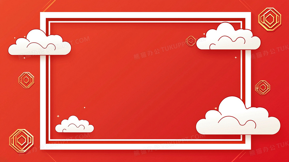 本作品内容为国潮风祥云边框背景, 格式为 jpg, 大小2 MB, 图片尺寸为2912 x 1632, 作品中背景图片无需修改, 源文件无水印,可以直接使用, 欢迎使用熊猫办公。 如认为平台内容涉嫌侵权,可通过邮件:tousu@tukuppt.com提出书面通知,我们将及时处理。