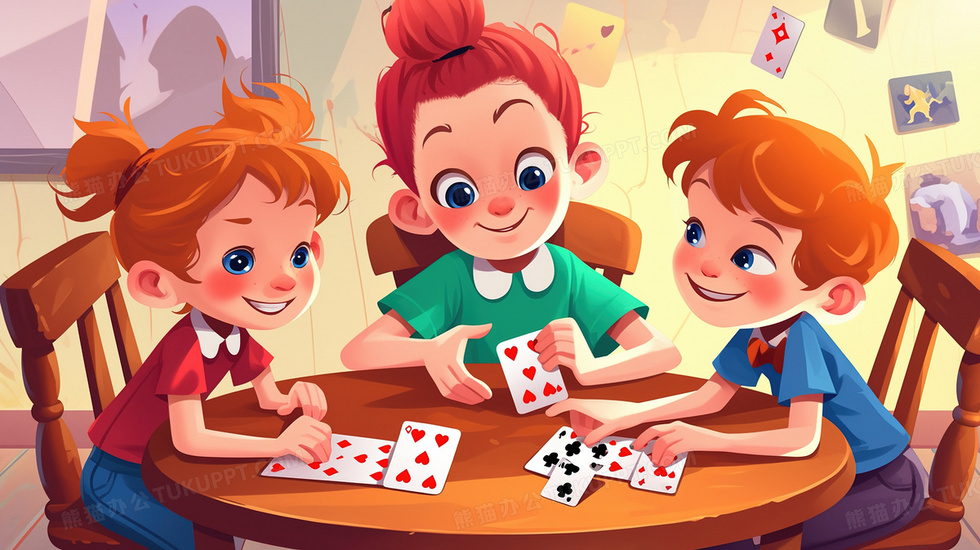 本作品内容为娱乐生活打扑克牌儿童卡通插画, 格式为 jpg, 大小2 MB, 图片尺寸为2912 x 1632, 源文件无水印, 欢迎使用熊猫办公。 如认为平台内容涉嫌侵权,可通过邮件:tousu@tukuppt.com提出书面通知,我们将及时处理。