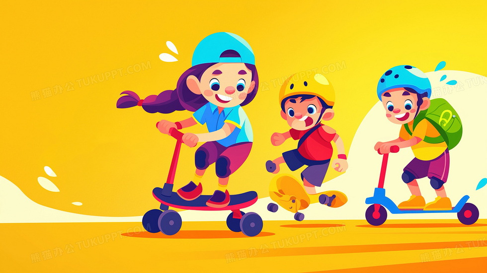 本作品内容为卡通儿童滑板车背景, 格式为 jpg, 大小2 MB, 图片尺寸为2912 x 1632, 作品中背景图片无需修改, 源文件无水印,可以直接使用, 欢迎使用熊猫办公。 如认为平台内容涉嫌侵权,可通过邮件:tousu@tukuppt.com提出书面通知,我们将及时处理。
