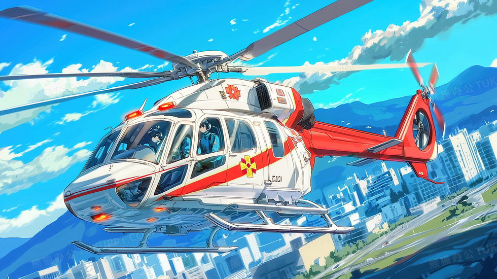 本作品内容为蓝天白云空中飞行的直升机插画, 格式为 jpg, 大小3 MB, 图片尺寸为2912 x 1632, 源文件无水印, 欢迎使用熊猫办公。 如认为平台内容涉嫌侵权,可通过邮件:tousu@tukuppt.com提出书面通知,我们将及时处理。