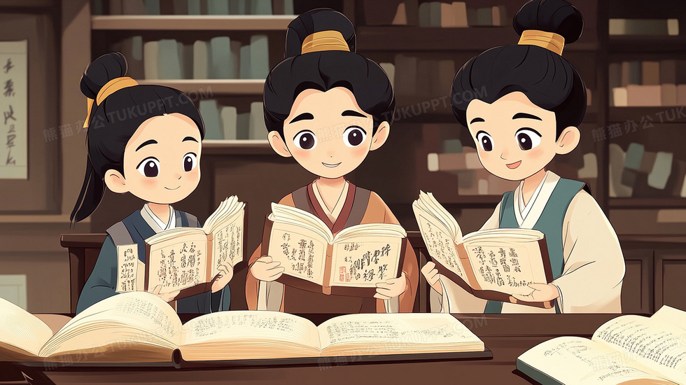 本作品内容为古代学习看书的学生教育插画, 格式为 jpg, 大小3 MB, 图片尺寸为2912 x 1632, 源文件无水印, 欢迎使用熊猫办公。 如认为平台内容涉嫌侵权,可通过邮件:tousu@tukuppt.com提出书面通知,我们将及时处理。