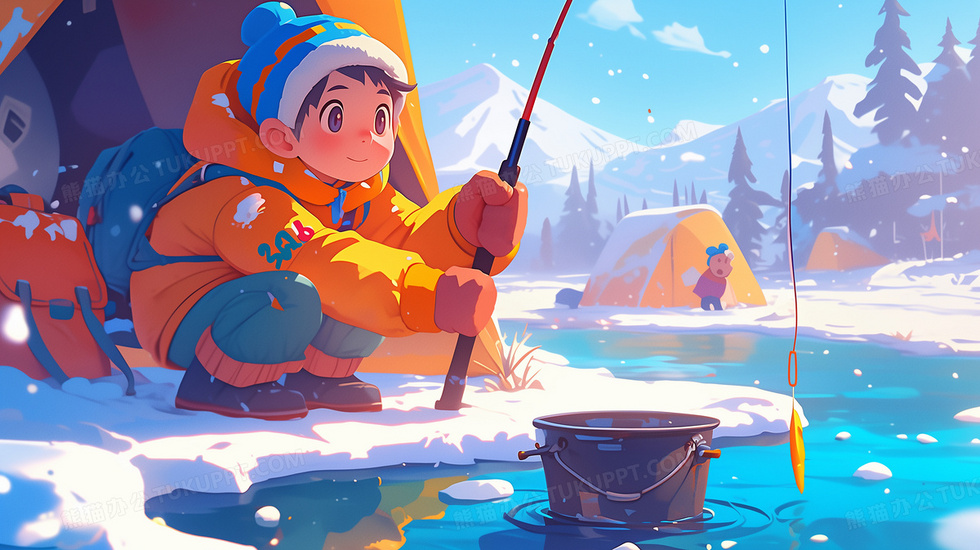 本作品内容为冬令营小朋友在湖面冰钓厚涂场景插画, 格式为 jpg, 大小7 MB, 图片尺寸为2912 x 1632, 源文件无水印, 欢迎使用熊猫办公。 如认为平台内容涉嫌侵权,可通过邮件:tousu@tukuppt.com提出书面通知,我们将及时处理。