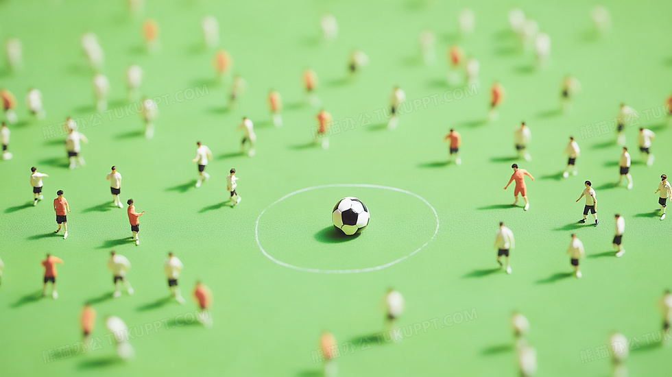 本作品内容为足球微缩景物模型合成背景, 格式为 jpg, 大小3 MB, 图片尺寸为2912 x 1632, 作品中背景图片无需修改, 源文件无水印,可以直接使用, 欢迎使用熊猫办公。 如认为平台内容涉嫌侵权,可通过邮件:tousu@tukuppt.com提出书面通知,我们将及时处理。
