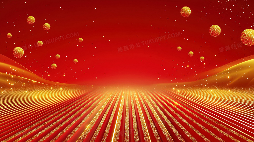 本作品内容为红金色粒子光线年会创意背景, 格式为 jpg, 大小3 MB, 图片尺寸为2912 x 1632, 作品中背景图片无需修改, 源文件无水印,可以直接使用, 欢迎使用熊猫办公。 如认为平台内容涉嫌侵权,可通过邮件:tousu@tukuppt.com提出书面通知,我们将及时处理。