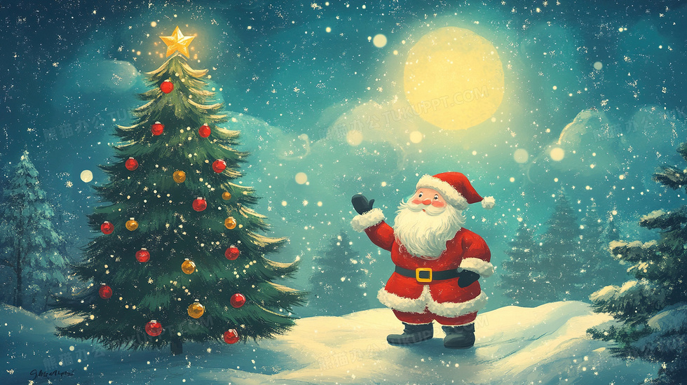 本作品内容为圣诞节星空下的圣诞老人与圣诞树插画, 格式为 jpg, 大小4 MB, 图片尺寸为2912 x 1632, 源文件无水印, 欢迎使用熊猫办公。 如认为平台内容涉嫌侵权,可通过邮件:tousu@tukuppt.com提出书面通知,我们将及时处理。