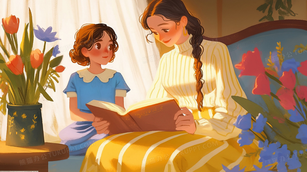 本作品内容为妈妈打开书本给女孩讲故事插画, 格式为 jpg, 大小3 MB, 图片尺寸为2912 x 1632, 源文件无水印, 欢迎使用熊猫办公。 如认为平台内容涉嫌侵权,可通过邮件:tousu@tukuppt.com提出书面通知,我们将及时处理。
