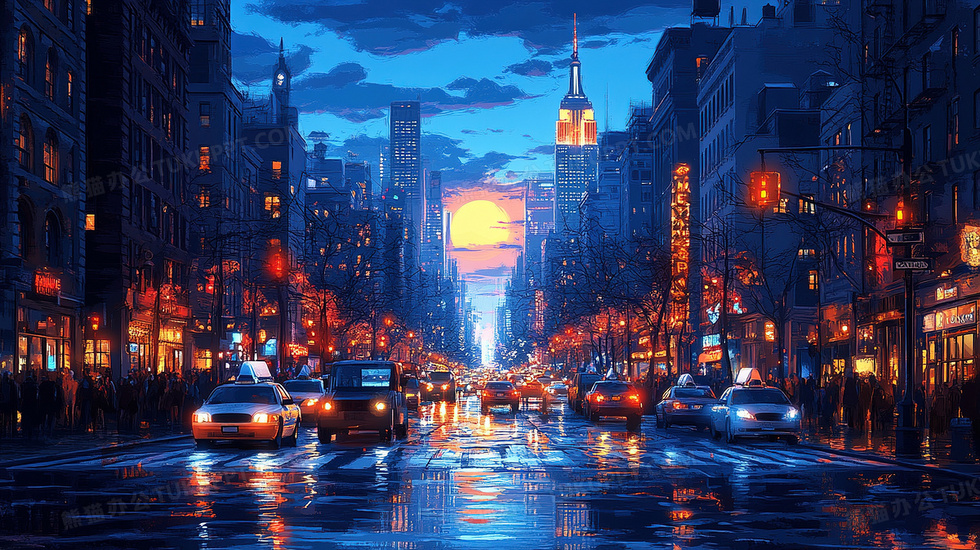 本作品内容为繁华都市街道夜景插画, 格式为 jpg, 大小5 MB, 图片尺寸为2912 x 1632, 源文件无水印, 欢迎使用熊猫办公。 如认为平台内容涉嫌侵权,可通过邮件:tousu@tukuppt.com提出书面通知,我们将及时处理。