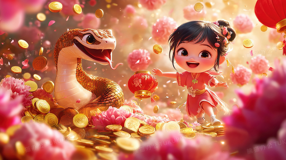本作品内容为蛇年牡丹花金币与蛇卡通女孩插画, 格式为 jpg, 大小3 MB, 图片尺寸为2912 x 1632, 源文件无水印, 欢迎使用熊猫办公。 如认为平台内容涉嫌侵权,可通过邮件:tousu@tukuppt.com提出书面通知,我们将及时处理。