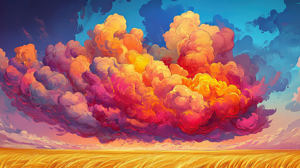 本作品内容为卡通风火烧云自然现象插画, 格式为 jpg, 大小4 MB, 图片尺寸为2912 x 1632, 源文件无水印, 欢迎使用熊猫办公。 如认为平台内容涉嫌侵权,可通过邮件:tousu@tukuppt.com提出书面通知,我们将及时处理。