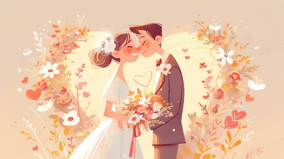 本作品内容为手绘卡通婚礼请柬新郎新娘结婚插画, 格式为 jpg, 大小3 MB, 图片尺寸为2912 x 1632, 源文件无水印, 欢迎使用熊猫办公。 如认为平台内容涉嫌侵权,可通过邮件:tousu@tukuppt.com提出书面通知,我们将及时处理。