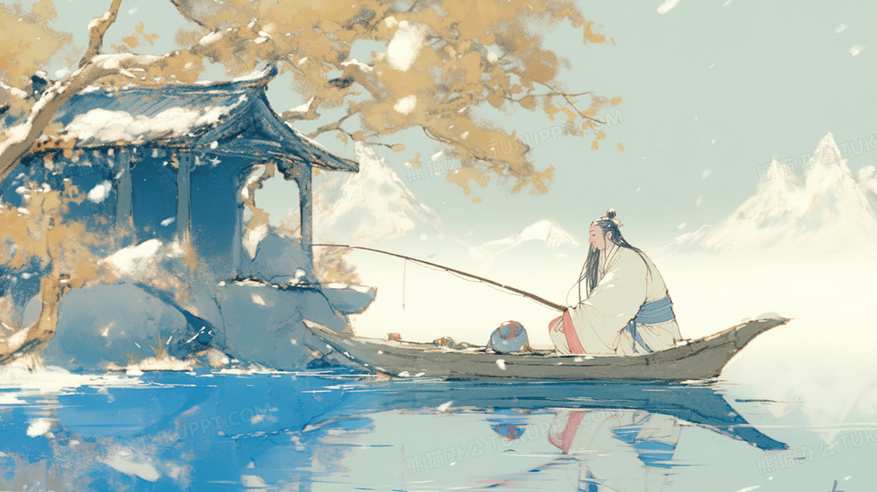 本作品内容为冬季湖面木船钓鱼老翁插画, 格式为 jpg, 大小3 MB, 图片尺寸为2912 x 1632, 源文件无水印, 欢迎使用熊猫办公。 如认为平台内容涉嫌侵权,可通过邮件:tousu@tukuppt.com提出书面通知,我们将及时处理。