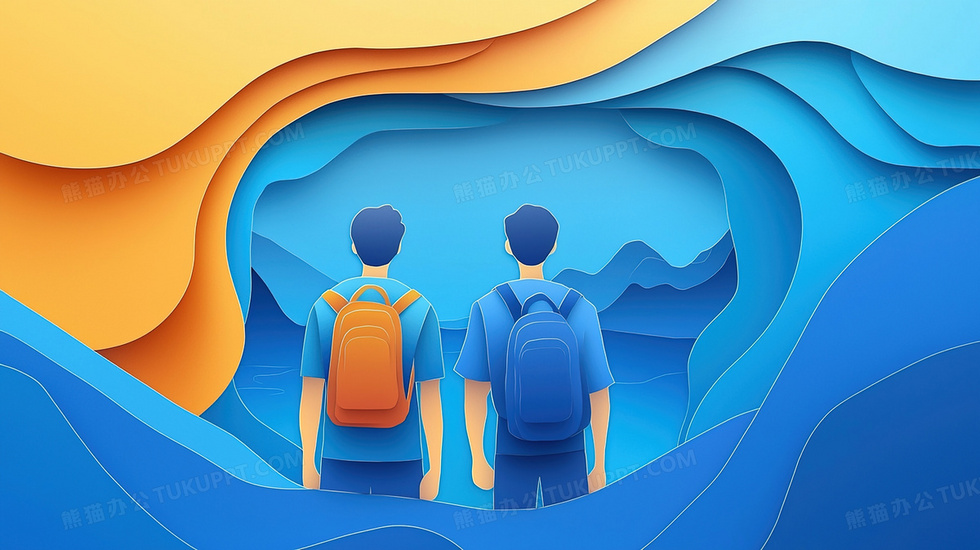 本作品内容为剪纸风背着双肩包登山男孩背影插画, 格式为 jpg, 大小2 MB, 图片尺寸为2912 x 1632, 源文件无水印, 欢迎使用熊猫办公。 如认为平台内容涉嫌侵权,可通过邮件:tousu@tukuppt.com提出书面通知,我们将及时处理。