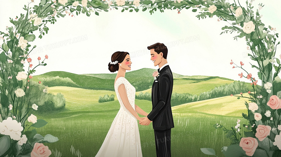 本作品内容为梦幻婚礼结婚鲜花拱门插画, 格式为 jpg, 大小4 MB, 图片尺寸为2912 x 1632, 源文件无水印, 欢迎使用熊猫办公。 如认为平台内容涉嫌侵权,可通过邮件:tousu@tukuppt.com提出书面通知,我们将及时处理。
