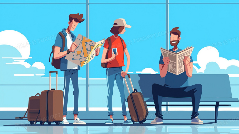 本作品内容为飞机场手拿地图规划旅游的青年人插画, 格式为 jpg, 大小2 MB, 图片尺寸为2912 x 1632, 源文件无水印, 欢迎使用熊猫办公。 如认为平台内容涉嫌侵权,可通过邮件:tousu@tukuppt.com提出书面通知,我们将及时处理。