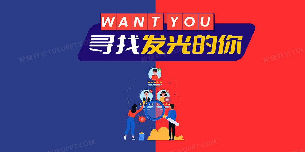 本作品内容为红蓝拼色简约风招聘商务背景, 格式为 psd, 大小2 MB, 图片尺寸为4724 x 2362, 作品中背景图片无需修改, 源文件无水印,可以直接使用, 欢迎使用熊猫办公。 如认为平台内容涉嫌侵权,可通过邮件:tousu@tukuppt.com提出书面通知,我们将及时处理。