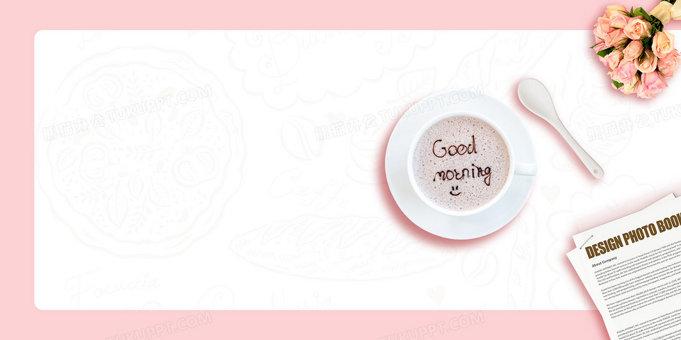 本作品内容为粉色商务清新咖啡早餐边框背景, 格式为 psd, 大小34 MB, 图片尺寸为4724 x 2362, 作品中背景图片无需修改, 源文件无水印,可以直接使用, 欢迎使用熊猫办公。 如认为平台内容涉嫌侵权,可通过邮件:tousu@tukuppt.com提出书面通知,我们将及时处理。