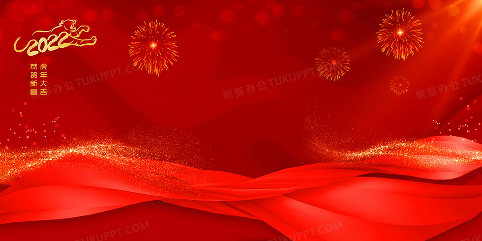 本作品内容为红色虎年大吉恭贺新禧背景, 格式为 psd, 大小38 MB, 图片尺寸为4724 x 2362, 作品中背景图片无需修改, 源文件无水印,可以直接使用, 欢迎使用熊猫办公。 如认为平台内容涉嫌侵权,可通过邮件:tousu@tukuppt.com提出书面通知,我们将及时处理。