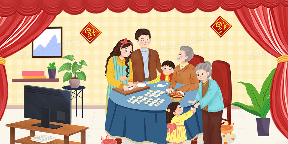 本作品内容为除夕包饺子阖家欢乐团聚年夜饭手绘背景, 格式为 psd, 大小22 MB, 图片尺寸为4724 x 2362, 作品中背景图片无需修改, 源文件无水印,可以直接使用, 欢迎使用熊猫办公。 如认为平台内容涉嫌侵权,可通过邮件:tousu@tukuppt.com提出书面通知,我们将及时处理。