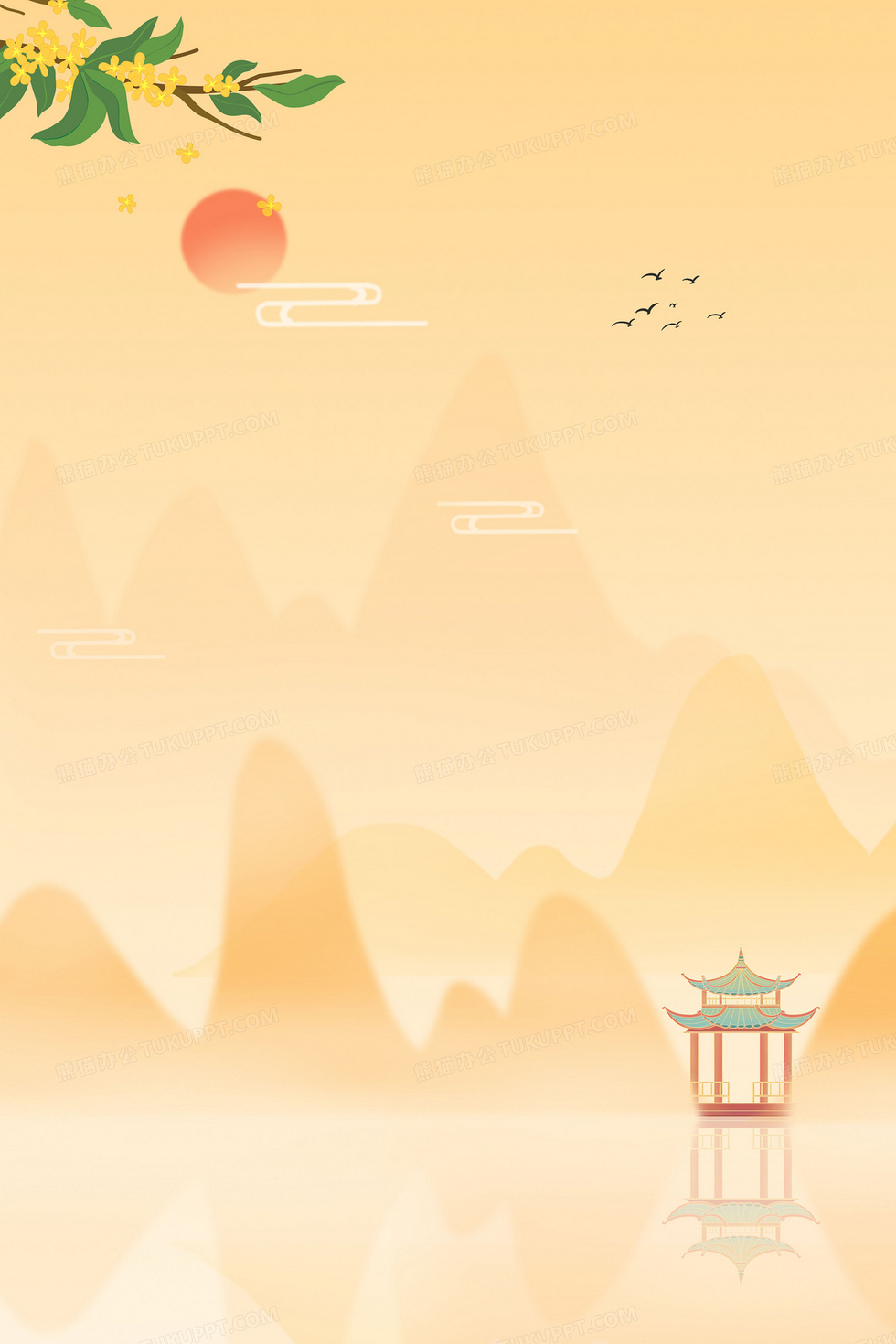 本作品内容为秋天山水弥散风古风节气背景, 格式为 psd, 大小46 MB, 图片尺寸为3543 x 5314, 作品中背景图片无需修改, 源文件无水印,可以直接使用, 欢迎使用熊猫办公。 如认为平台内容涉嫌侵权,可通过邮件:tousu@tukuppt.com提出书面通知,我们将及时处理。