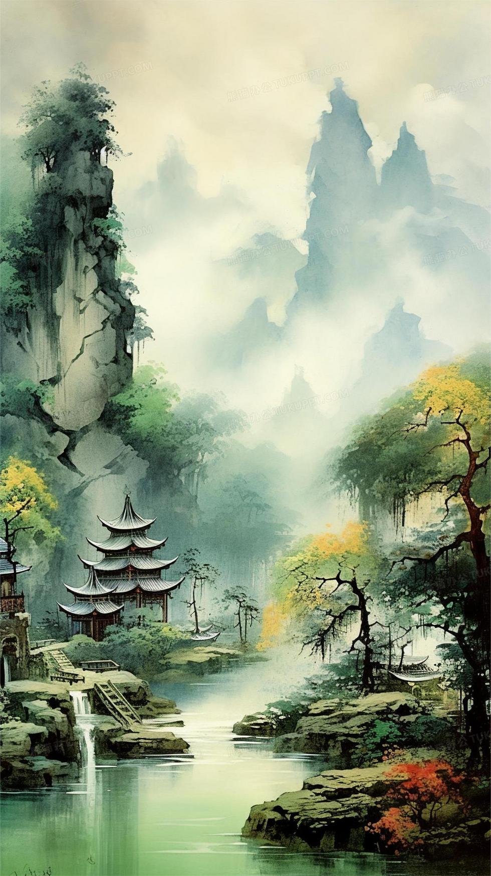 本作品内容为中国风水墨山水楼台景色, 格式为 jpg, 大小1 MB, 图片尺寸为1632 x 2912, 源文件无水印, 欢迎使用熊猫办公。 如认为平台内容涉嫌侵权,可通过邮件:tousu@tukuppt.com提出书面通知,我们将及时处理。