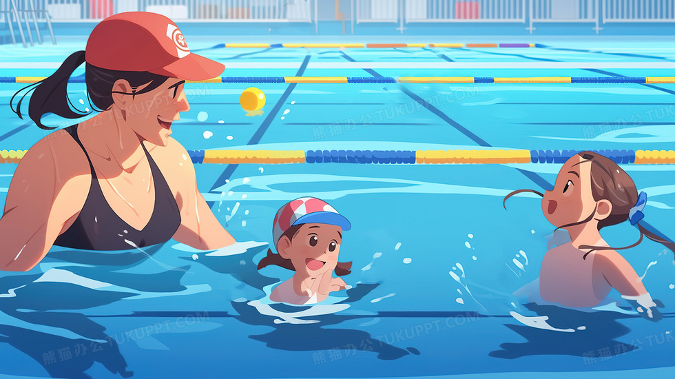 本作品内容为夏天孩子们认真的和教练学习游泳创意插画, 格式为 jpg, 大小6 MB, 图片尺寸为2912 x 1632, 源文件无水印, 欢迎使用熊猫办公。 如认为平台内容涉嫌侵权,可通过邮件:tousu@tukuppt.com提出书面通知,我们将及时处理。