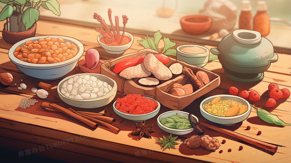 本作品内容为丰富的食材配料辛香料美食插画, 格式为 jpg, 大小6 MB, 图片尺寸为2912 x 1632, 源文件无水印, 欢迎使用熊猫办公。 如认为平台内容涉嫌侵权,可通过邮件:tousu@tukuppt.com提出书面通知,我们将及时处理。