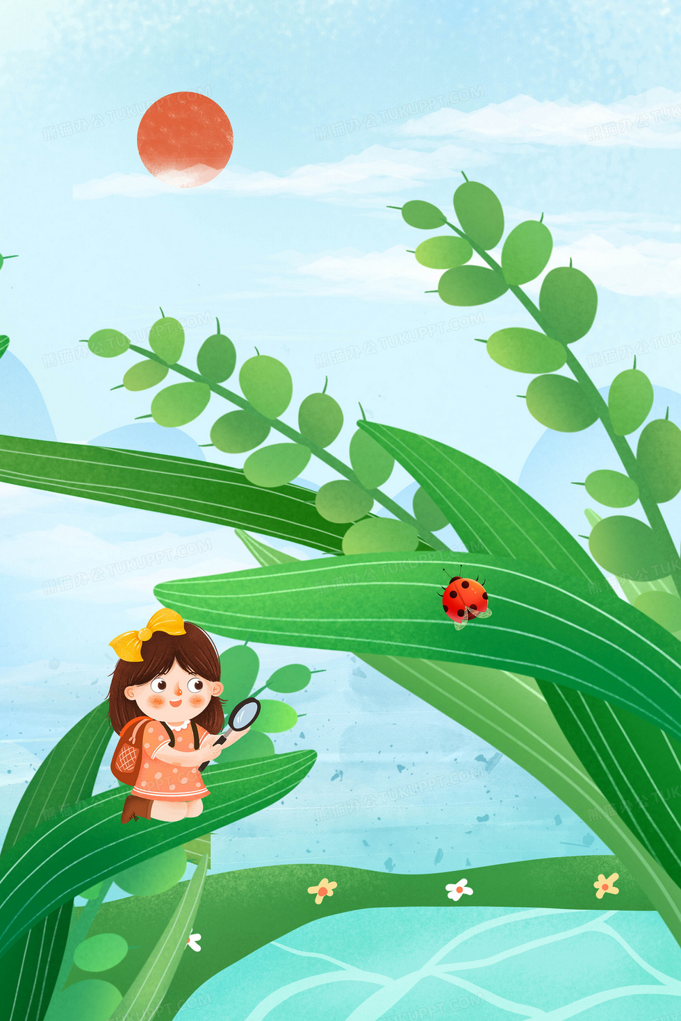 本作品内容为女孩在绿色植物池塘观察昆虫插画, 格式为 psd, 大小109 MB, 请使用软件PhotoShop(CS6)打开, 源文件无水印, 欢迎使用熊猫办公。 如认为平台内容涉嫌侵权,可通过邮件:tousu@tukuppt.com提出书面通知,我们将及时处理。