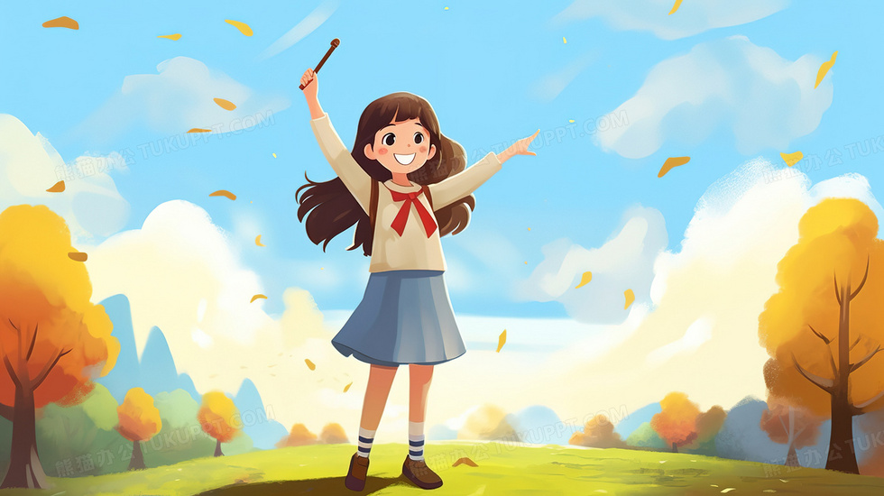 本作品内容为卡通秋季可爱的女孩在郊外挥起双手, 格式为 jpg, 大小2 MB, 图片尺寸为2912 x 1632, 源文件无水印, 欢迎使用熊猫办公。 如认为平台内容涉嫌侵权,可通过邮件:tousu@tukuppt.com提出书面通知,我们将及时处理。