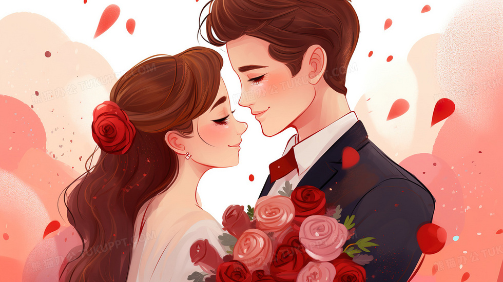 首页 > 插画 > 科技艺术 > 水彩手绘 > 女孩抱着玫瑰花依偎在爱人怀里