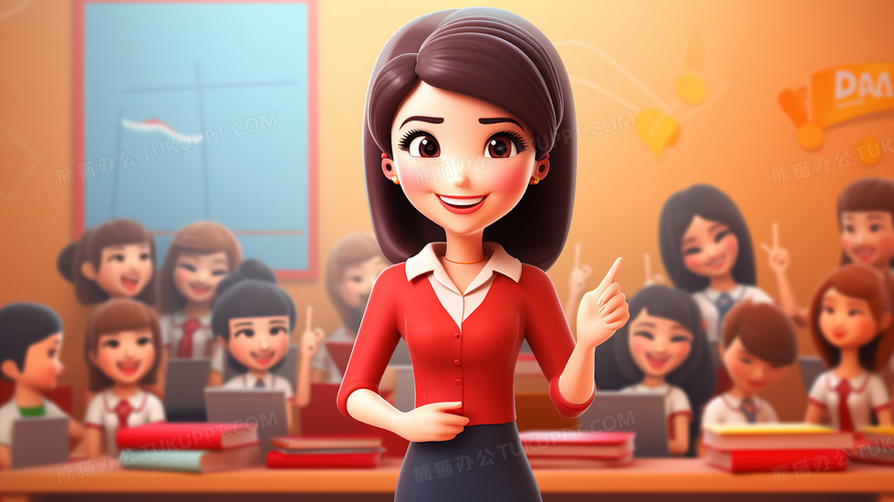 本作品内容为彩色3D立体可爱女教师插画, 格式为 jpg, 大小4 MB, 图片尺寸为2912 x 1632, 源文件无水印, 欢迎使用熊猫办公。 如认为平台内容涉嫌侵权,可通过邮件:tousu@tukuppt.com提出书面通知,我们将及时处理。