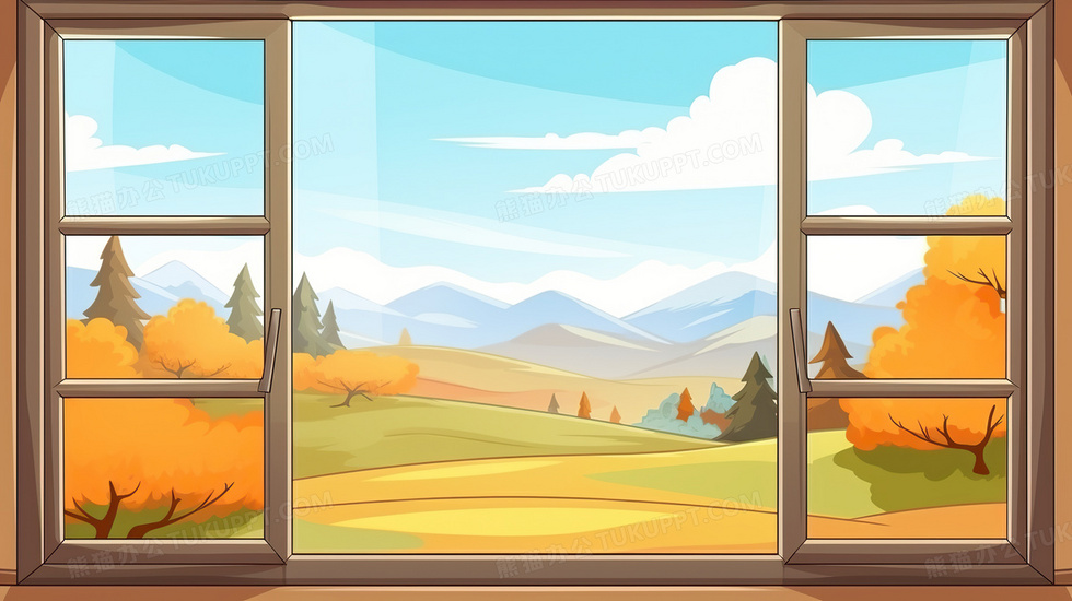 本作品内容为秋天窗外唯美风景文艺卡通插画, 格式为 jpg, 大小4 MB, 图片尺寸为2912 x 1632, 源文件无水印, 欢迎使用熊猫办公。 如认为平台内容涉嫌侵权,可通过邮件:tousu@tukuppt.com提出书面通知,我们将及时处理。
